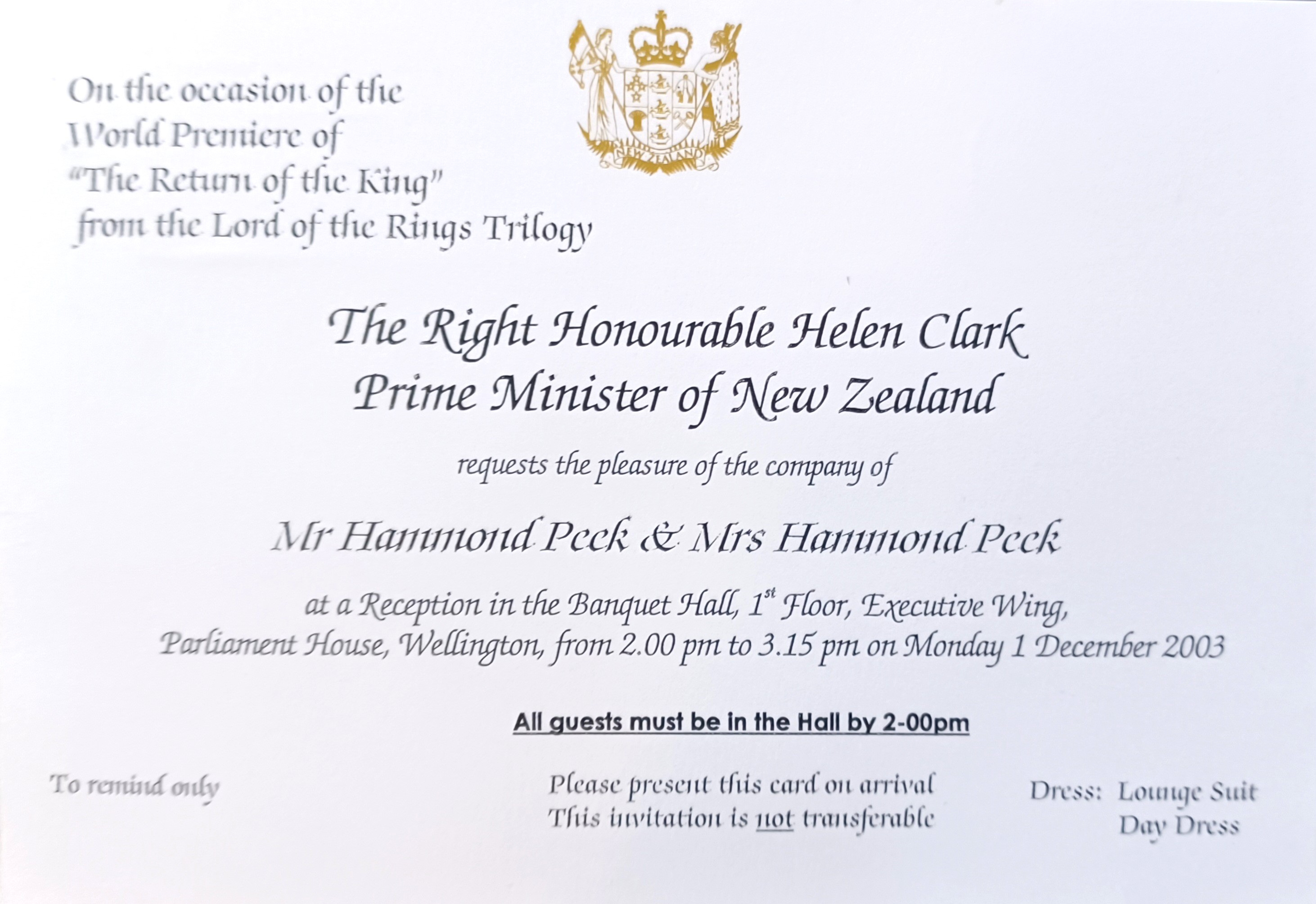 As part of the celebrations at that time some of us LOTR folk were hosted at parliament in Wellington by our Prime Minister Helen Clark.