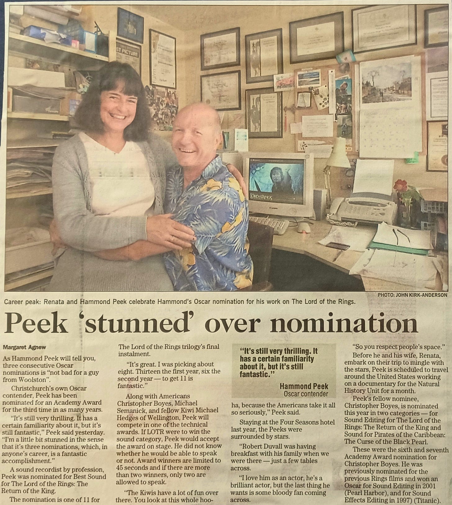 One of each Sound Mixing team is always nominated as what’s called the Lead Mixer. And that person’s name is always read out first. In our case it was Christopher Boyes. Now Chris had been frantically busy year that year, and he was actually nominated for Sound Mixing for two movies, our own THE LORD OF THE RINGS: THE RETURN OF THE KING and also PIRATES OF THE CARIBBEAN: THE CURSE OF THE BLACK PEARL.