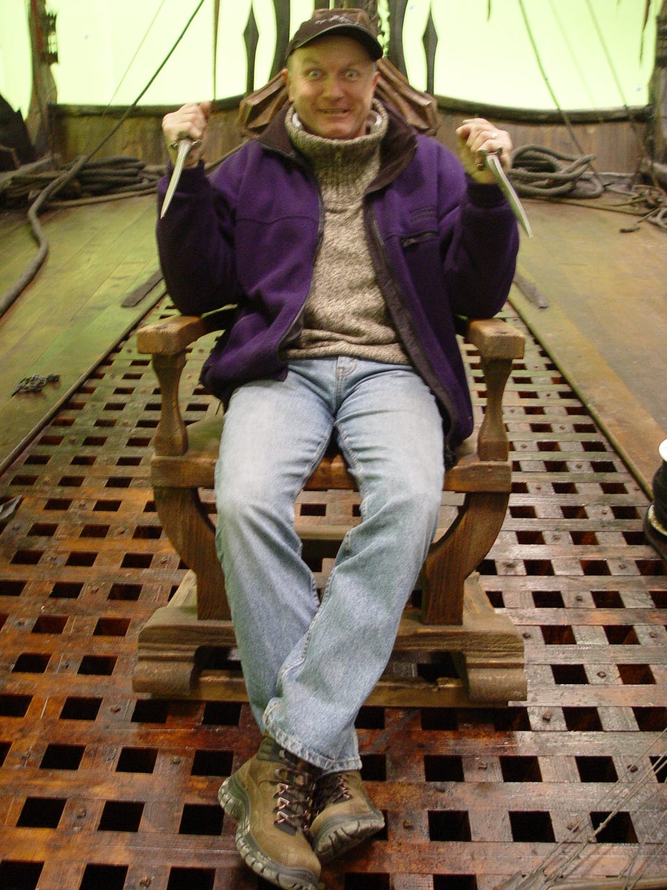 As soon as we finished each cast member’s little bit of extra shooting, we had to let them go because they had other filming commitments around the world. So, on each actor’s last day, Peter would always gather the cast and crew together at the end of that shooting day and make a thank you speech for that departing cast member. Pete would give them a gift, usually their favourite weapon from THE LORD OF THE RINGS. The actor would thank Pete and us crew, and then we would watch a short video clip cut together by the editorial department that highlighting some of that actor’s most poignant performance moments in the Trilogy, followed by a few funny moments… a few sorts of Christmas reel gag moments.
